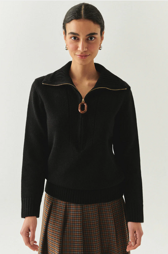 Exquise -Addison Ribbed Quarter-Zip Wide Collar Long Sleeve Sweater