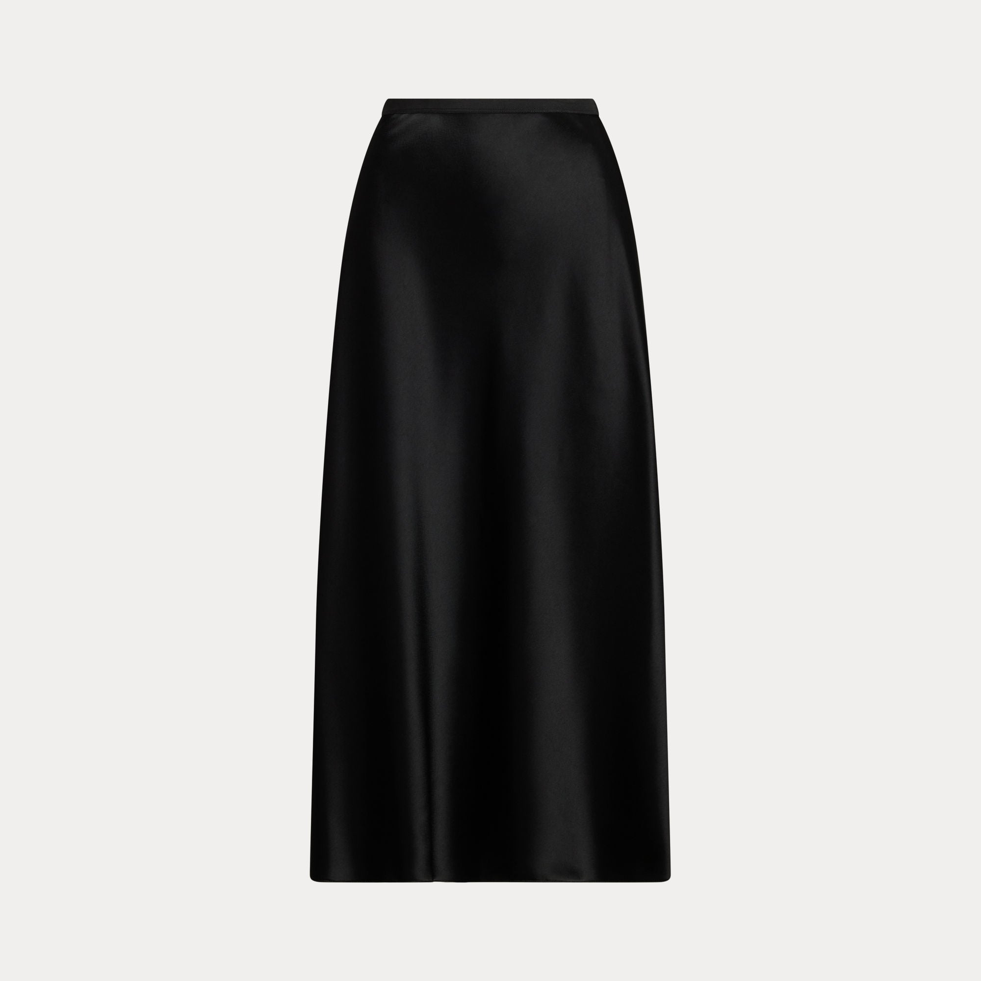 Rendered in double-faced satin for a fluid drape, this skirt has an elasticized opening that sits at the natural waist and a silhouette that flares below the hips.